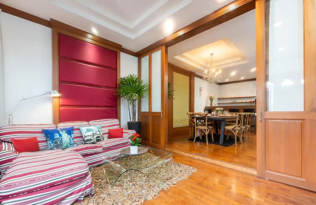 The 5-bedroom Mak Sukhumvit 15 Villa Bangkok is located within 25 minutes' walk of the shopping mall "CentralPlaza Grand Rama 9" and provides a swimming pool, ensuring a relaxing stay. Situated in the Tuscolana district of Bangkok, this 5-bathroom holiday home features a terrace overlooking city.